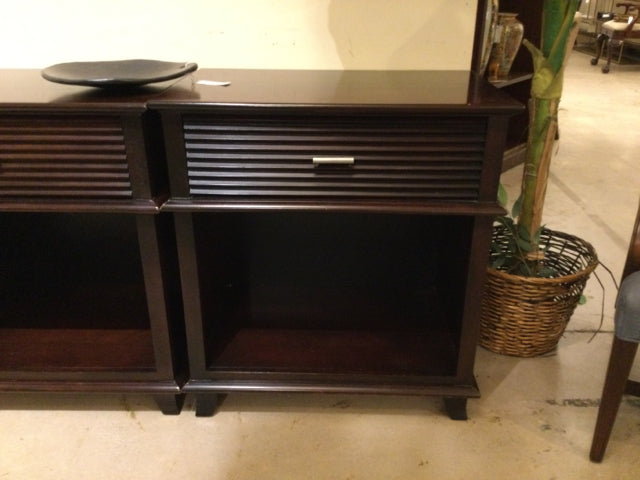 18x28x31 mahogany, 1 drawer w/ ribbed design and open shelf below, slight as is.
