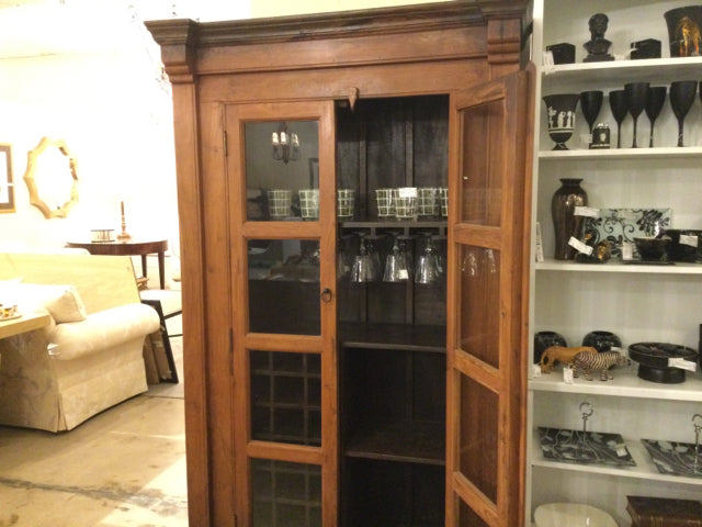 20x46x78 mahogany w/ double glass doors and inside wine bottle/wine glass storage
