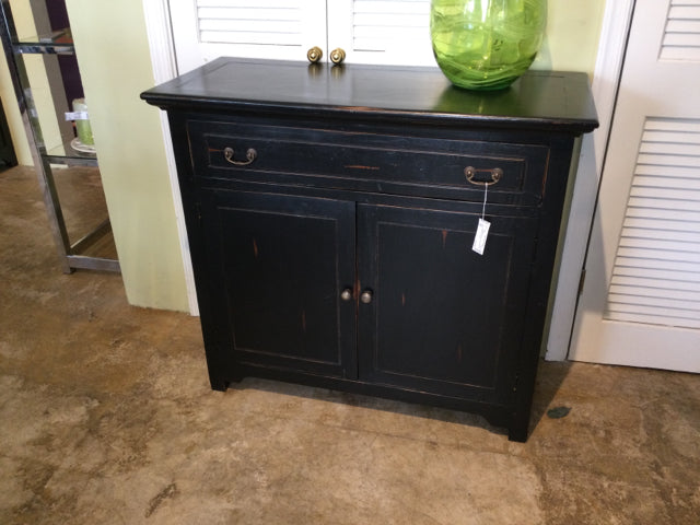 17x39x35 black distressed painted w/ 1 drawer and 2 doors