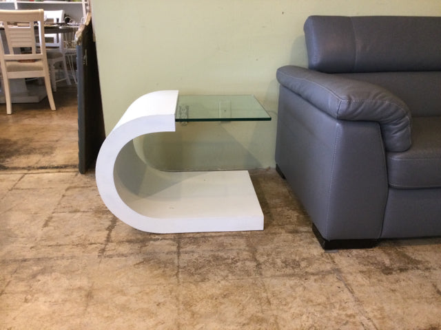 20x28x22 vintage cream laminate "c" base w/ cantilevered glass top. finish some as is