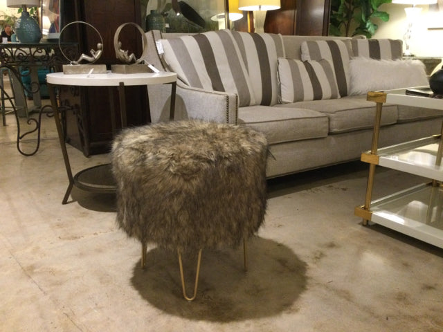 19"Rd x 20"H tan/brown faux fur on brushed gold metal bracket legs